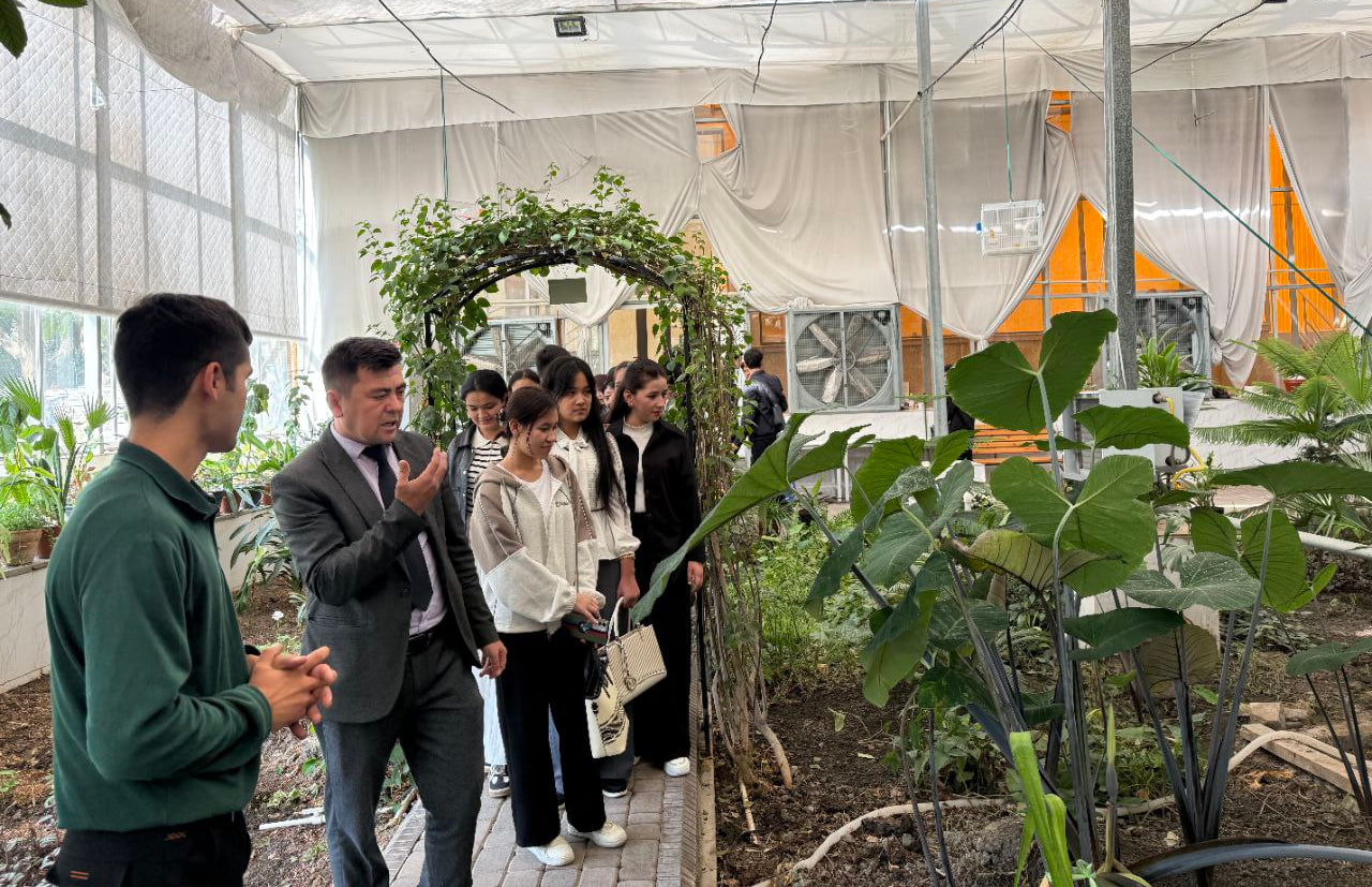 On the occasion of the Day of Ecological Knowledge, H. Jo'lanov, a tutor at the Faculty of Banking and Financial Services of the Samarkand Institute of Economics and Service, organized an excursion to the Samarkand State University greenhouse with his students. During the visit, the tutor and staff provided insights into greenhouse operations and plant care, while also sharing important information on environmental protection and the conservation of nature and wildlife.
